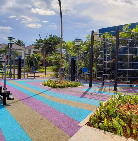 Deretan fasilitas modern tersebut di antaranya adalah trek lari, gym, kolam renang, dan area kerja bersama (co-working lounge).
